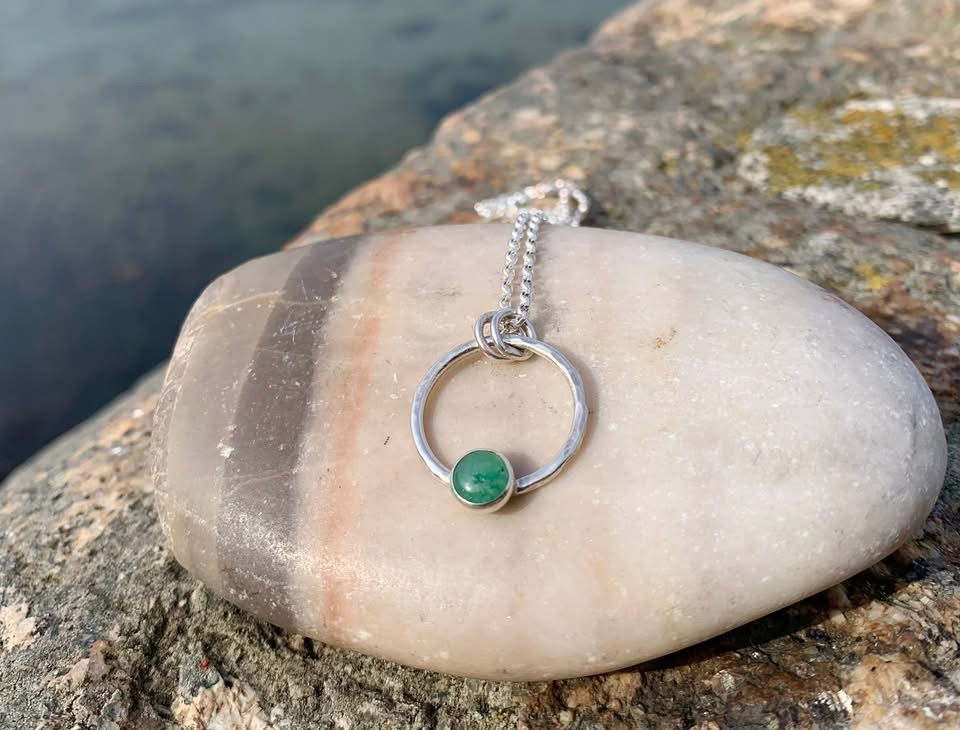 The green Aventurine pendant has been handcrafted from recycled sterling silver with a lightly hammered finish. Featuring a 6mm beautiful deep green Adventurine gemstone.