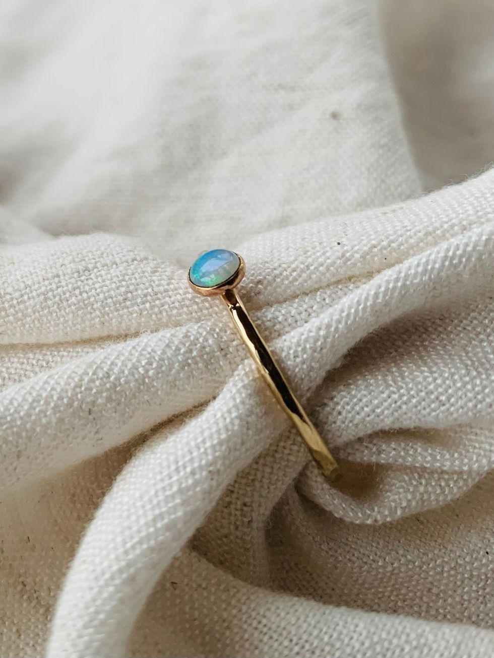 This gold filled stacking ring boasts a beautiful 4mm natural Opal gemstone. Lovely worn alone or alongside my other gold filled ring designs to create a stacking set.